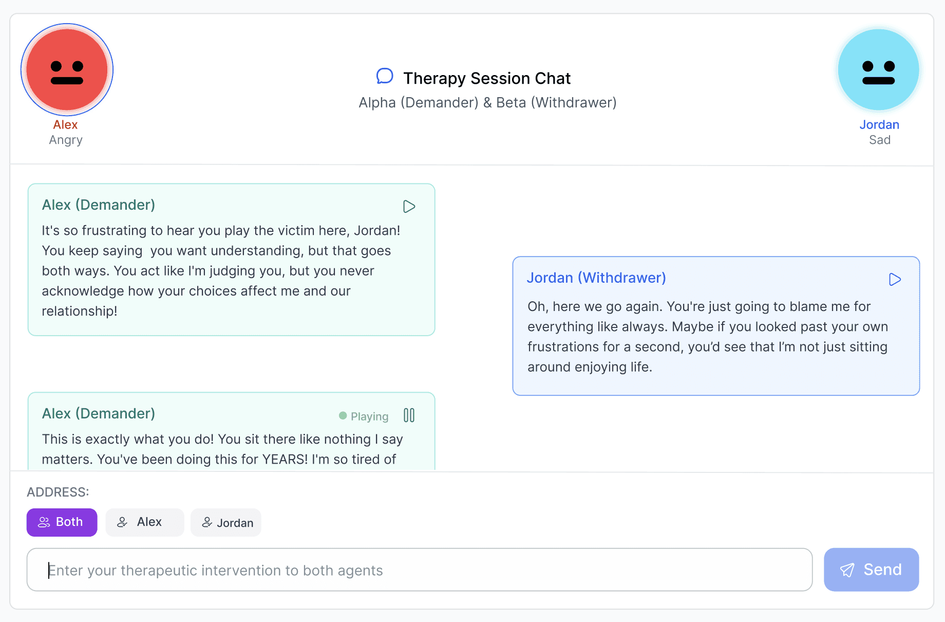 Modeling Multi Party Interaction in Couples Therapy: A Multi-Agent Simulation Approach